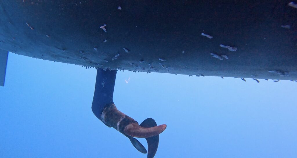 Whilst we were down there we both had a good look around the hull to check everything was ok and it’s pretty mental just how much marine life there is growing on the boat (the hull was spotless when we left!).