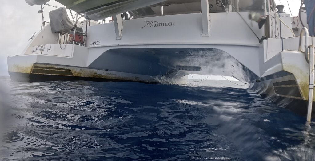 As mentioned, one of our holding tanks in backing up and the last thing I want to do at sea is to try clearing it out. However, we came up with the idea of seeing if we could unblock it from the outside…. I managed to clear it (at least partially by diving under the boat with a rod and poking around) – and yes it was pretty gross. Oh, the fun things you never expected you’d be doing in your future.