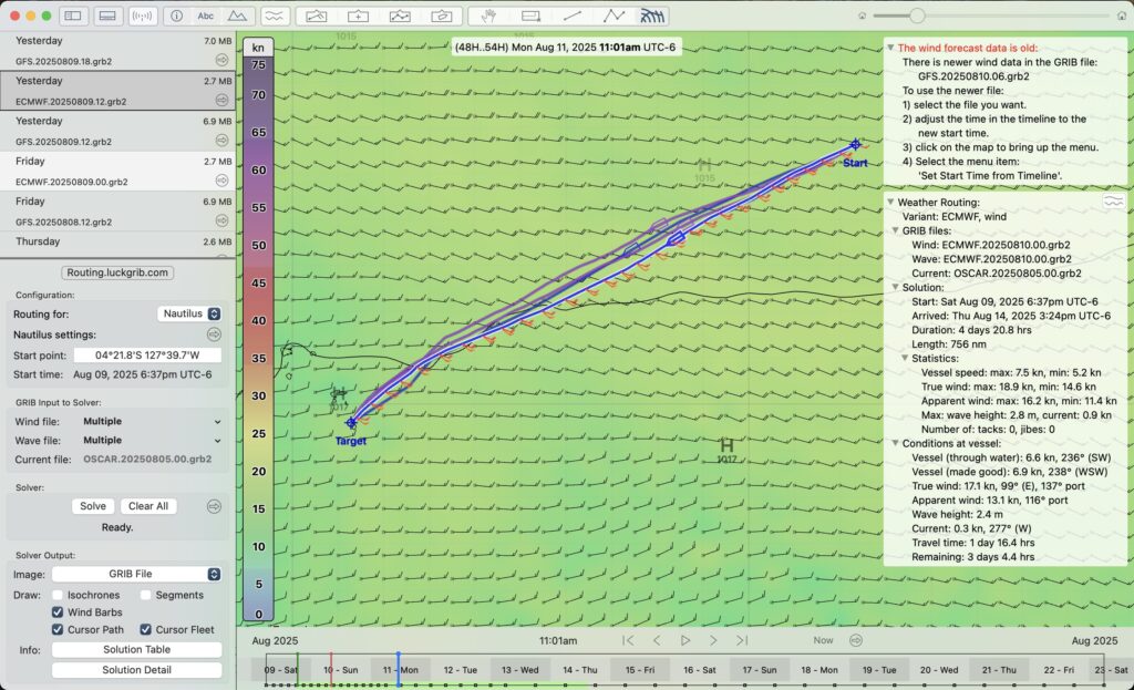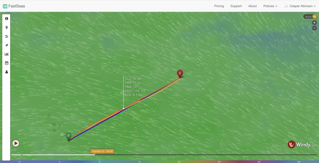 And the finally we have the weather routing apps we use. They both run on my laptop and help calculate the fastest or smoothest route for you to take based on the available weather models. I’ll usually download the data for these a couple of times a day and updating our planned course on the nav computer.