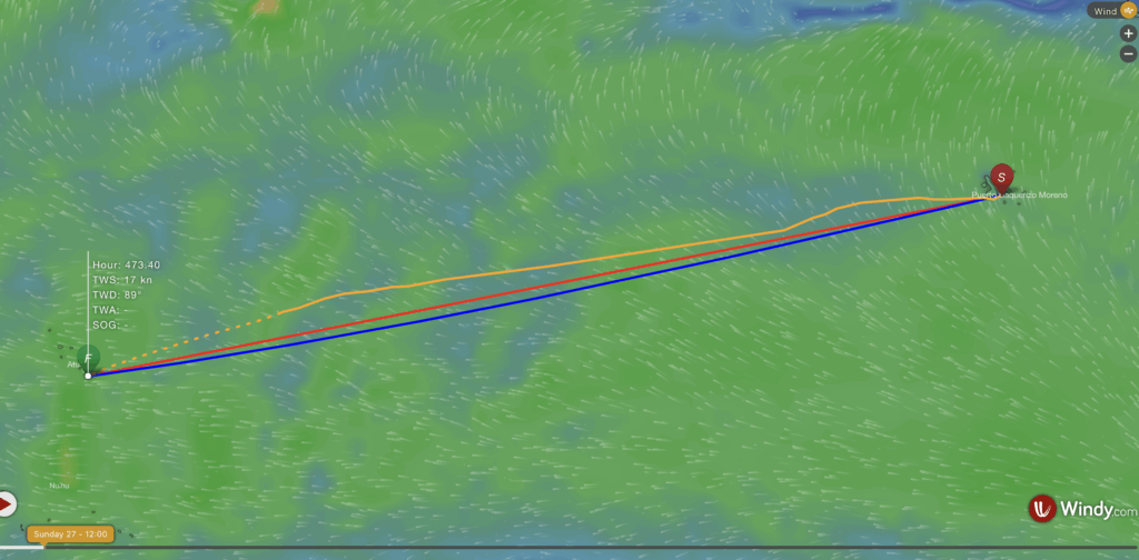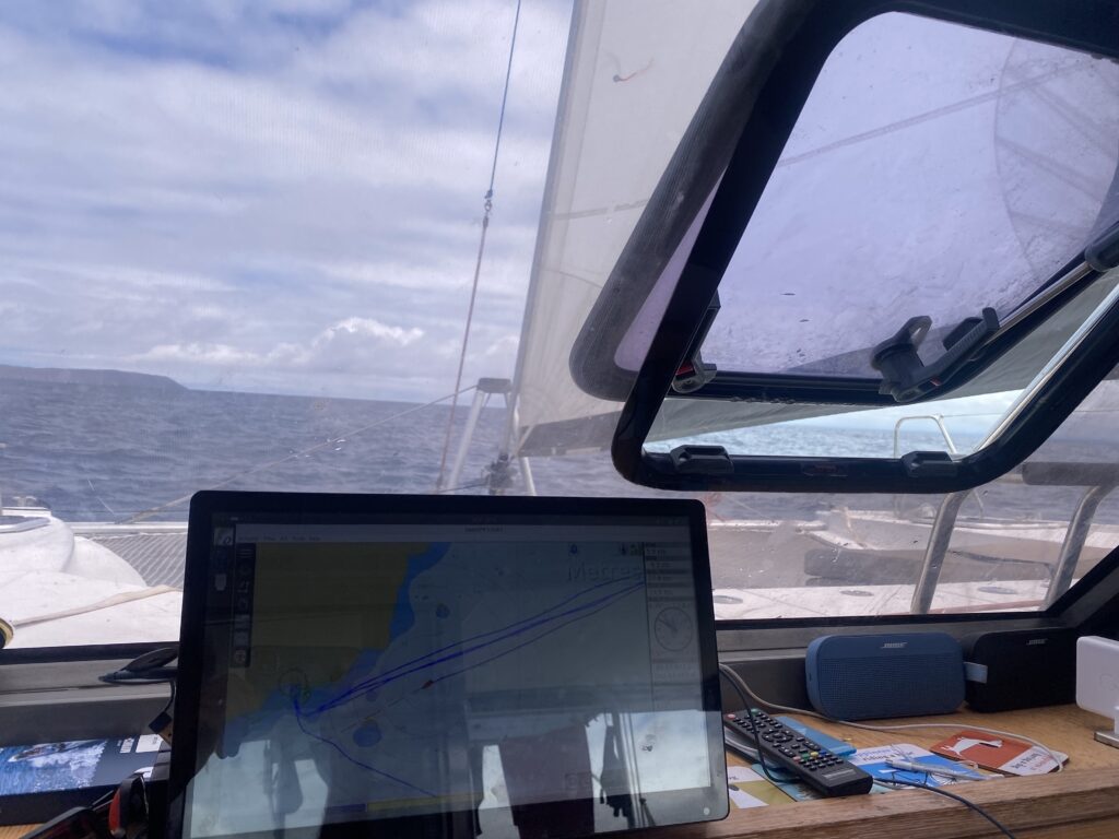 Fortunately we don’t need to decide until tomorrow, so i’ll keep an eye on that the forecast has to say…. in the meantime, we’re tracking along the coast of Isabella at 6 knots. You can keep a track of our progress at: https://share.garmin.com/watermarksailing